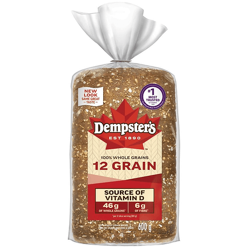 Dempsters 100% Whole Grain Bread 12 GrainDempster's® Whole Grains 12 Grain Bread is full of flavour. The soft bread is made with our simplest ingredients and no artificial flavours or colours for tasty meals you can feel good about serving.
