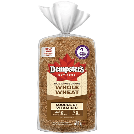Dempsters 100% Whole Grain Bread Whole WheatDempster's® Whole Grains 100% Whole Wheat Bread is a tasty favourite. The soft bread is made with our simplest ingredients and no artificial flavours or colours for meals you can feel good about.