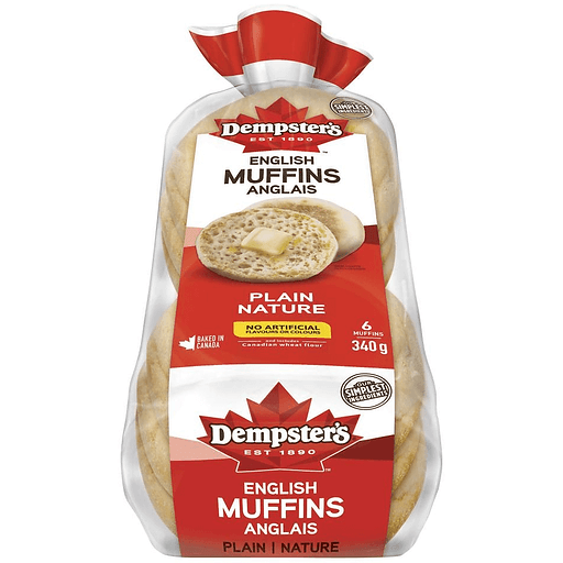 Dempsters English Muffins Plain 6SDempster's® Plain English Muffins are ideal for toasting and a fun favourite at family meals. These tasty muffins are made with our simplest ingredients and contain no artificial flavours or colours.