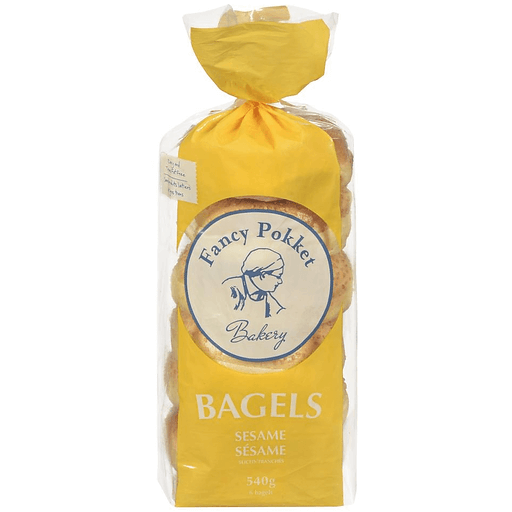Fancy Pokket Bakery Bagels Sesame SlicedFancy Pokket Sesame Bagels. Sesame bagels have a rich, nutty texture and flavour.