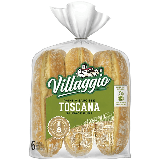 Villaggio® Toscana™ Extra Soft Sausage Buns are delicious, Italian-style buns baked without artificial colours or flavours. Soft and hearty with natural olive oil flavour, these tasty buns are a perfect complement to any sausage or grilled sandwich and help make any BBQ a special occasion. Irresistibly good, they bring the warmth and simple pleasure of the village bakery to your table.