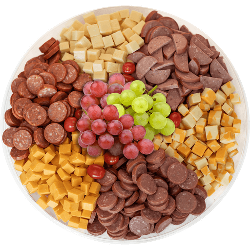 Meat & Cheese TrayMeats included are a selection of Pepperoni, Polish Sausage & Salami. Cheeses included are a selection of Marble Cheddar, Medium Cheddar and Havarti.