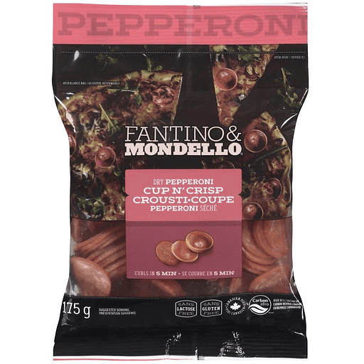 Take pizza night to the next level with the authentic Italian flavour of Fantino & Mondello® Cup N’ Crisp Pepperoni. This sliced pepperoni is prepared in the traditional way—unhurried and with only the highest quality ingredients. Since 1949, the Fantino & Mondello® family of artisans have translated their passion and respect for Italian traditions and flavours into premium Italian charcuteries that help you savour the best moments in life with family and friends. This dry pepperoni curls as it cooks, for crispy pizzeria-quality results in just five minutes. It comes conveniently sliced in a resealable package for easy serving and storage. As well as a premium pizza topping, this spicy pepperoni is a popular charcuterie board choice when entertaining and tastes great stacked with other cold cuts as a sandwich meat. Made with dry-cured Canadian pork, 6 grams of protein per serving, and no gluten, lactose or trans fats, this sliced pepperoni is a satisfying and delicious way to enjoy a taste of today’s dolce vita.