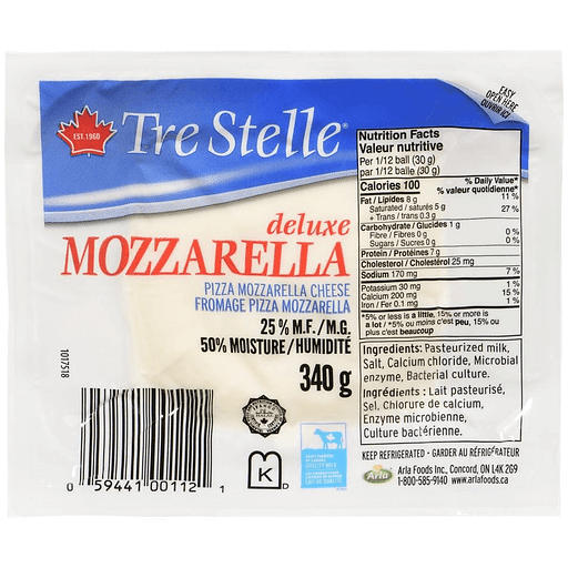 Tre Stelle Pizza Mozzarella Cheese Deluxe Mozzarella 25 % M.F.