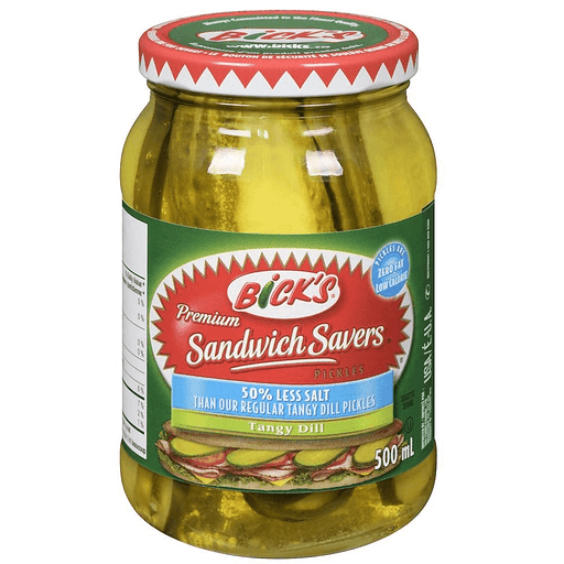 Bicks Sandwich Savers Tangy Dill Less Salt