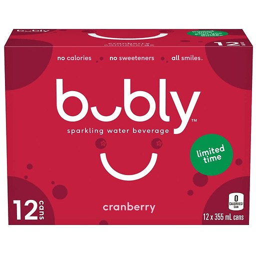 Bubly Sparkling Water Beverage Cranberry Limited TimePrice online does not include bottle deposit. Bottle deposits will be added to your order.