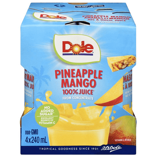 Dole Juice Pineapple Mango No Sugar AddedPrice online does not include bottle deposit. Bottle deposits will be added to your order.