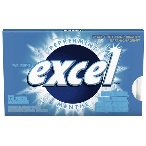 Excel Sugar-Free Gum PeppermintWith Maltitol, Sorbitol, Mannitol, Aspartame, Acesulfame-Potassium. Excel-erate your breath.