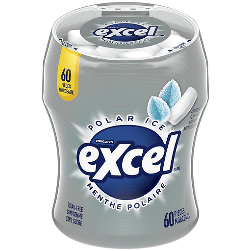 Excel Sugar-Free Gum Polar IceWith Maltitol, Sorbitol, Mannitol, Aspartame, Acesulfame-Potassium. Excel-erate your breath!