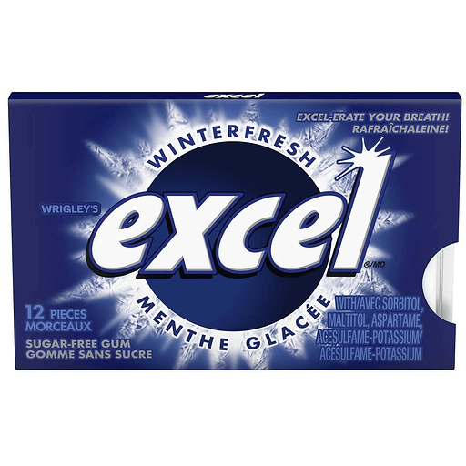 Excel Sugar-Free Gum WinterfreshWith Maltitol, Sorbitol, Mannitol, Aspartame, Acesulfame-Potassium. Excel-erate your breath.