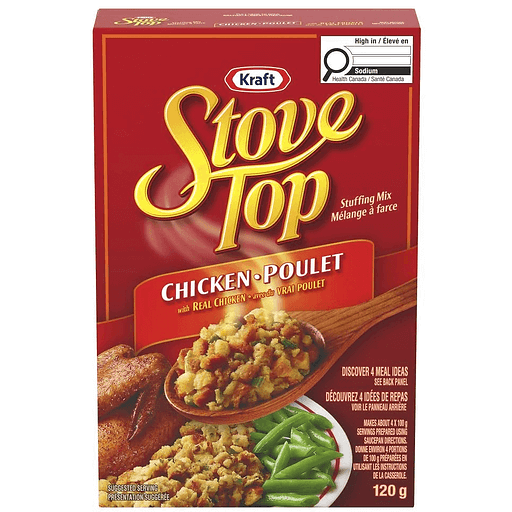 Kraft Stove Top Stuffing Mix ChickenWith real chicken. Each pouch makes 4 x 1/2 cup (125 ml) servings.