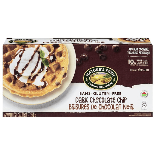 Nature's Path Organic Dark Chocolate Chip waffles are thick, crispy gluten free waffles dotted with organic semi-sweet chocolate chips. We wanted the convenience of a quick breakfast option, without sacrificing the need to have a mindful, well balanced and nourishing diet. We carefully crafted the best frozen waffles to balance convenience and health. You’ll be amazed at how delicious our gluten free waffles are. You should never have to sacrifice taste because of your gluten free diet, so we’ve made sure that ours are the best tasting waffles you’ll find! We know it’s important to start the day right, and that’s why we created this deliciously tasty waffle. Thick and crispy, and made with only the best simple, whole food, organic ingredients so you’ll never have to compromise.