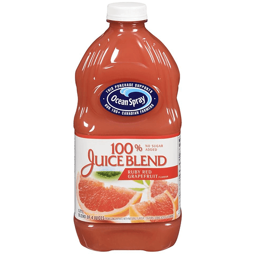 Ocean Spray 100 % Juice Blend Ruby Red Grapefruit FlavourPrice online does not include bottle deposit. Bottle deposits will be added to your order.