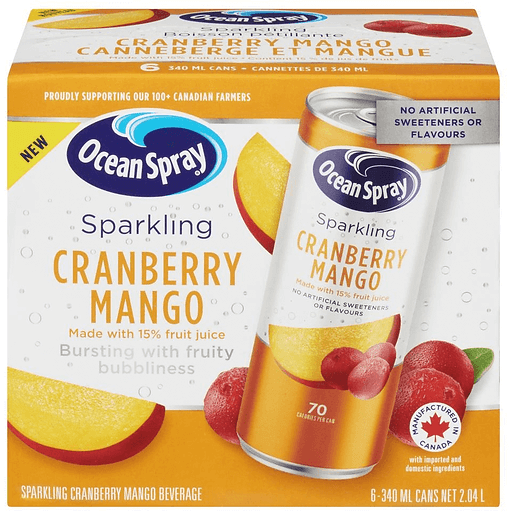 Ocean Spray Beverage Sparkling Cranberry Mango 6SPrice online does not include bottle deposit. Bottle deposits will be added to your order.