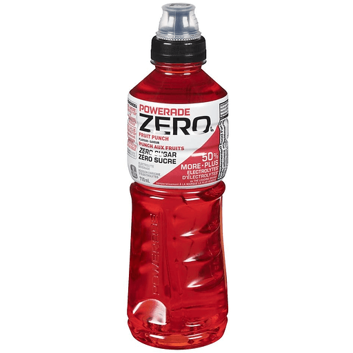 Powerade Zero Electrolyte Beverage Fruit Punch FlavourPrice online does not include bottle deposit. Bottle deposits will be added to your order.