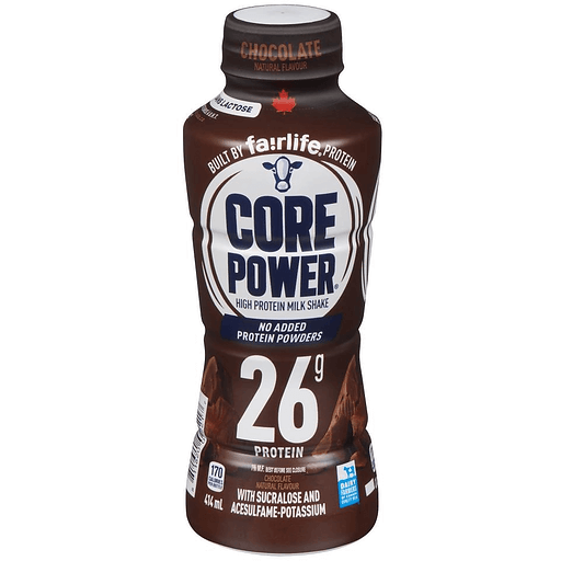 Core Power High Protein Milk Shake Chocolate Natural Flavour 1% M.F.Price online does not include bottle deposit. Bottle deposits will be added to your order.