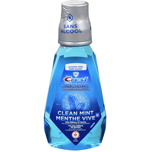 You can make a difference in your oral health starting today. Crest Pro-Health Multi-Protection Clean Mint Mouthwash kills millions of germs that cause plaque, gingivitis and bad breath without burning sensation of alcohol.