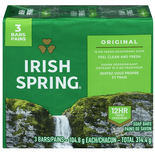 Smell like you came from a nice-smelling place with Irish Spring Bar Soap. The Irish Spring bar soap carton might have a new design, but it’s still the same great bar soap you love to smell. Count on Irish Spring Original Clean Deodorant Bar Soap to leave your skin feeling clean — our Original bar soap for men is made with a 98% naturally derived formula that keeps you fresh for 12 hours. Plus, this men’s bar soap is mild for skin and paraben, phthalate and gluten free. This bar soap also has flaxseed oil. Feel good while washing your body with Irish Spring and use Irish Spring Original Clean Bar Soap as a hand soap, too — this bar soap has a sudsy lather that washes away bacteria. Get as fresh as the great outdoors and add some adventure to your everyday with Irish Spring’s whole line of body washes and bar soaps for men. Our packaging refresh is all part of our master plan to bring the amazing places you love to smell straight to your bathroom. Never go without smelling your best. Keep some in your bathroom, in the pantry, give some to your friends and keep the good smells going. Feel clean, smell serene with the new Irish Spring.