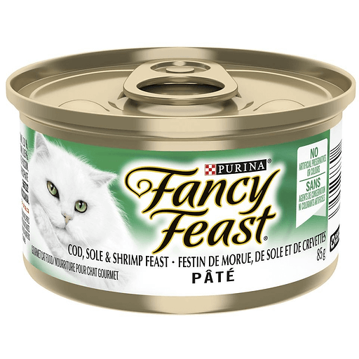 Purina Fancy Feast Cat Food Pate Cod Sole ShrimpA scrumptious combination with cod, sole & shrimp feast.