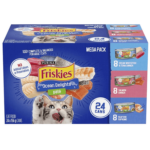 Friskies Seafood Variety Pack Cat Food is full of discovery and wonder. Features a delectable variety of delicious flavours including salmon, tuna and whitefish in a smooth, pleasing texture that will have your cat eagerly anticipating mealtime every day.