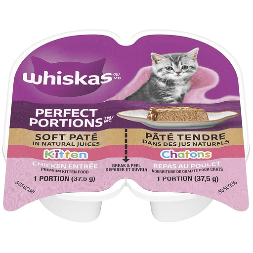 Whiskas Perfect Portions Premium Kitten Food Kitten Chicken EntréeFormulated to meet AAFCO Cat Food Nutrient Profiles for all life stages.