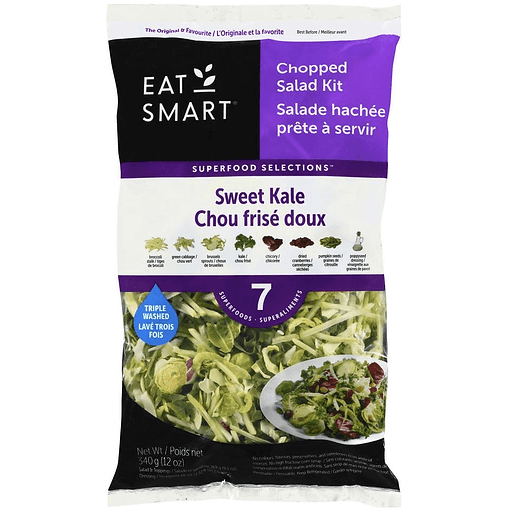 Salad & Toppings: 9.5 oz (269 g). Dressing/Vinaigrette: 2.5 oz (66 ml) 2.32 fl oz. Includes: broccoli, brussels sprouts, cabbage, kale, chicory, dried cranberries, roasted pumpkin seeds, poppyseed dressing. Contains 7 superfoods. Gluten free. We know that fresh, flavourful vegetables are an important part of a healthy lifestyle. That is why we are committed to providing you with the highest quality ingredients. Excellent source of vitamin C. The Sweet Kale Salad is a great tasting blend of seven superfoods. Product of USA, Mexico.