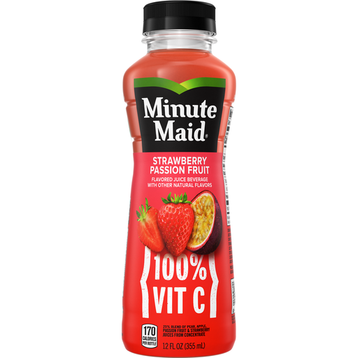 Bring the juice with Minute Maid. This delicious blend of sweet strawberry and passionfruit flavors is bursting with bright, fruity flavor. It's fruity goodness that refreshes your day and brings a smile with every sip.